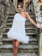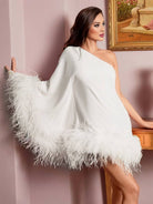 هذه الفستان القصير على شكل حرف A بكتف واحد مثالي للمناسبات الخاصة. تصميمه الفريد مع الأكمام الكاب يضيف لمسة من الرقي. مثالي للكوكتيلات والرقصات أو الحفلات.