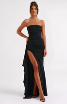 هذا الفستان الطويل بدون أكتاف يتناسب مع القوام بأناقة بفضل قصته الضيقة. ظهره المكشوف الراقي وشقّه العالي يبرزان المشية مع إضافة لمسة من الجاذبية المتقنة. مثالي للسهرات الأنيقة والمناسبات الخاصة حيث يكون المظهر هو الفارق.