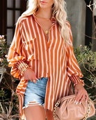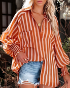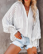 تقدم هذه البلوزة الخفيفة راحة مثالية لأيام الصيف الحارة. تصميمها المخطط يضيف لمسة من الانتعاش لخزانتك.