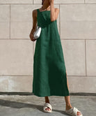 يجذب هذا الفستان الطويل بأسلوبه البسيط وسقوطه السلس الذي يبرز القوام بشكل طبيعي. قصته النظيفة والشقوق الجانبية الخفية تجعله قطعة مثالية لدمج الراحة والرفاهية. خفيف ومريح للارتداء، يتناسب مع الأيام المشمسة وكذلك لحظات الاسترخاء في العطلات.