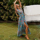 Questo abito lungo svasato seduce per la sua linea fluida e il suo taglio asimmetrico. Il suo collo a V lusinghiero e le sue maniche corte a farfalla aggiungono un tocco di femminilità bohémien. Perfetto per esprimere il tuo stile con leggerezza ed eleganza.