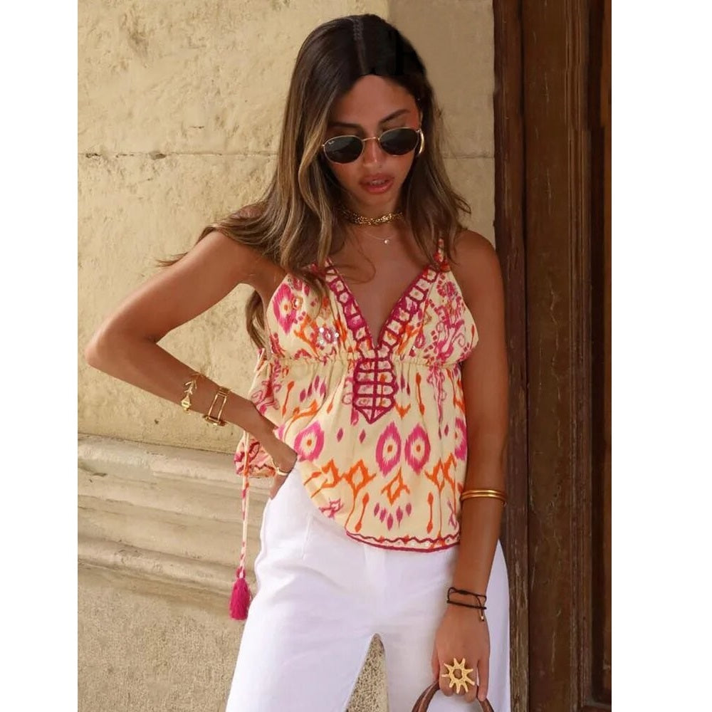 Louna | Bluse Chic Uden Ærmer – Afslappet Elegance Og Solrige Farver
