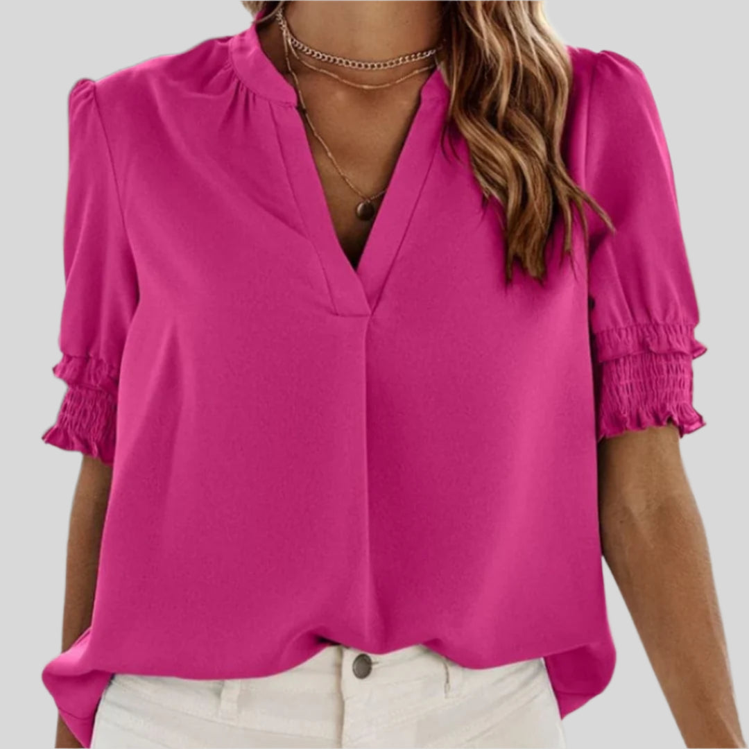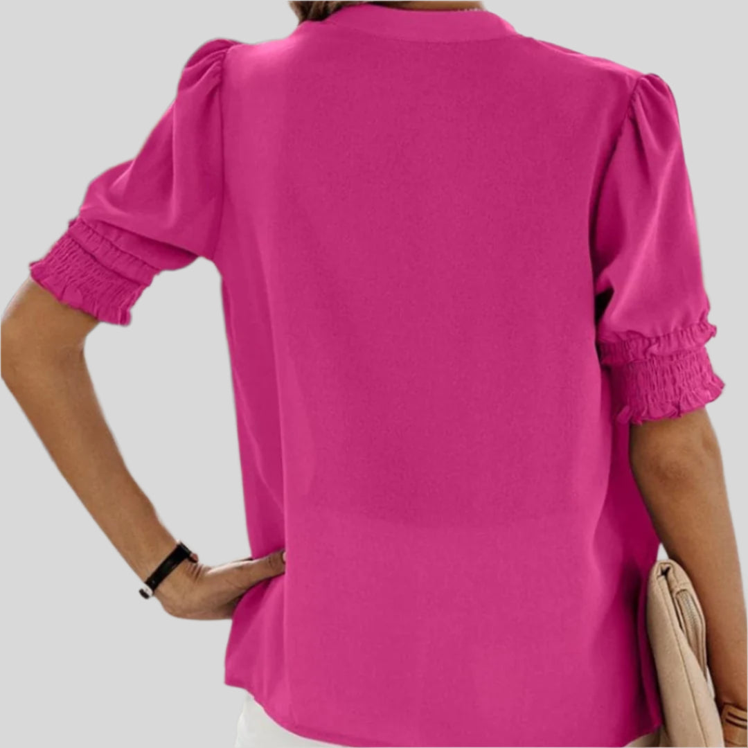 Deborah | Elegant Bluse med Rynkede Ærmer