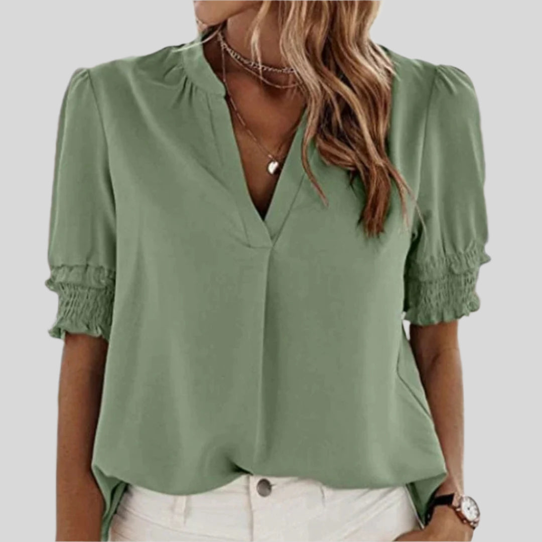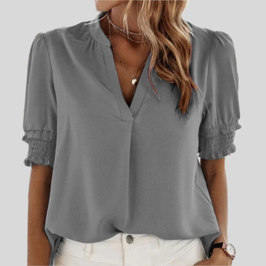 Audrey | Bluse til kvinder med flæser og elegant V-hals