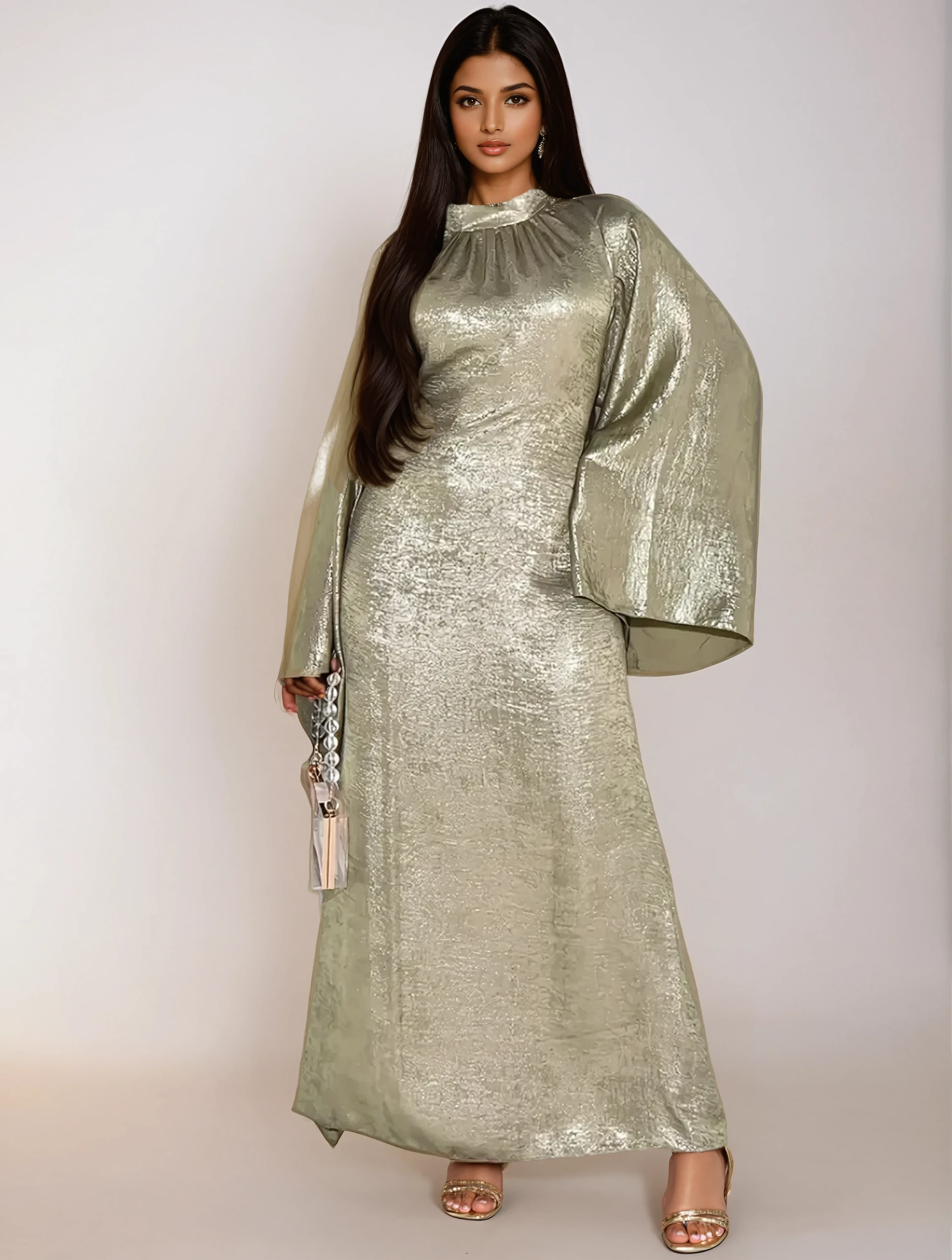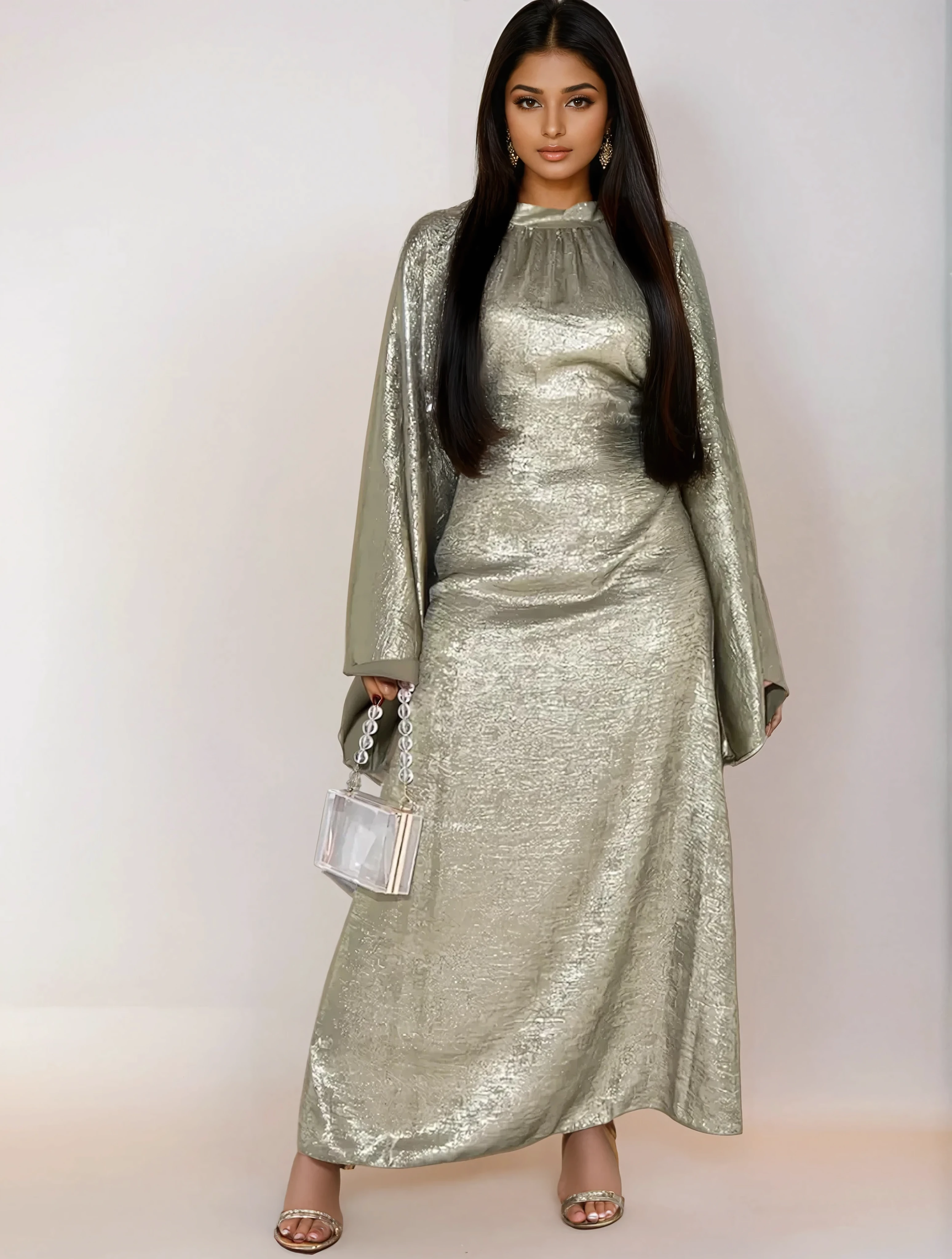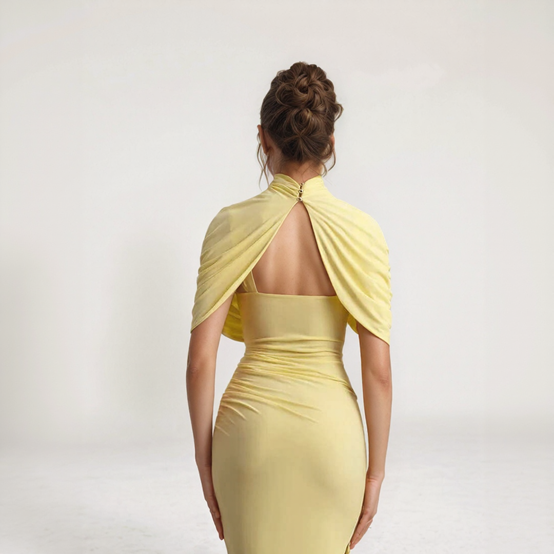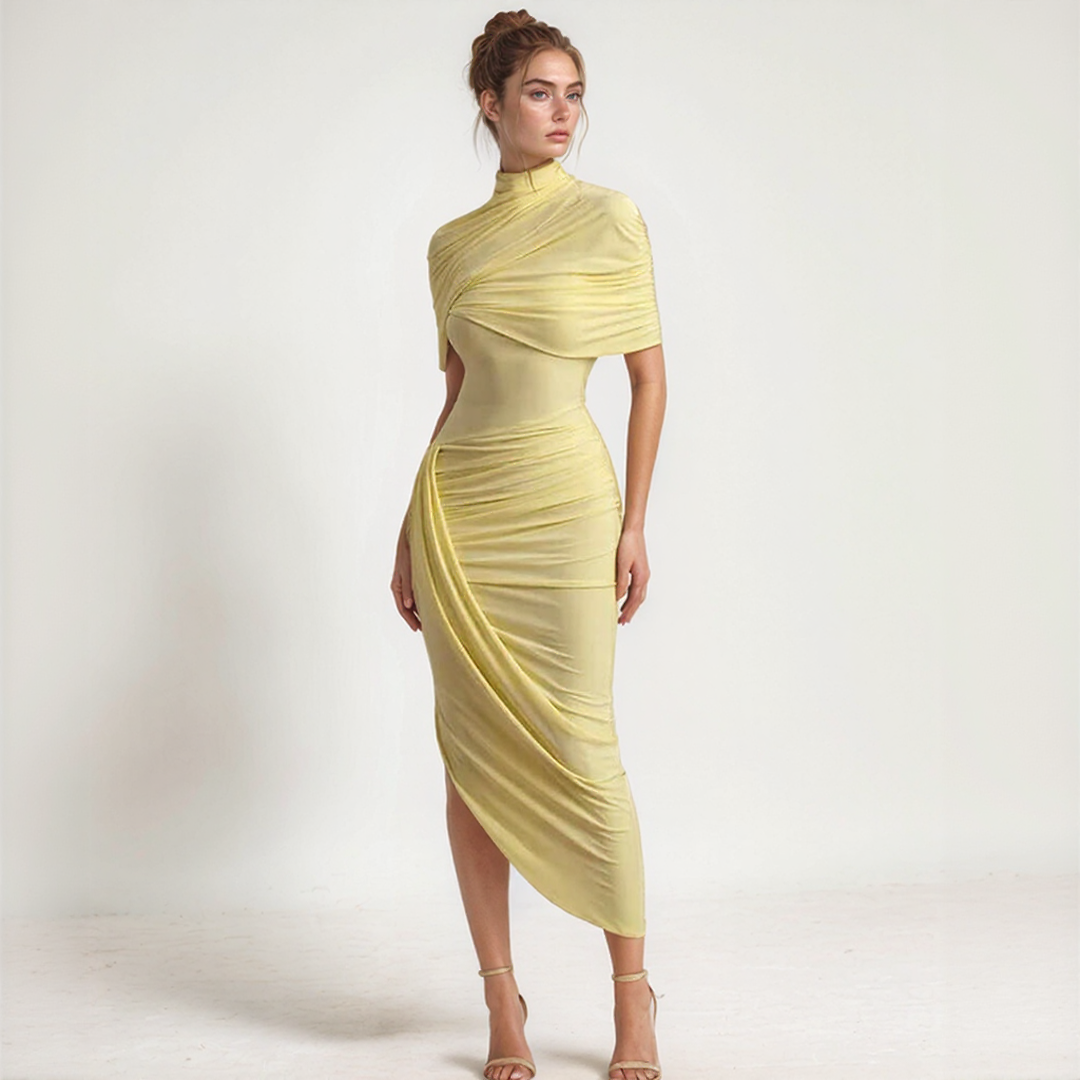 Νέλλυ | Μακριά Κομψή Φόρεμα – Ασύμμετρη Κοπής και Ενσωματωμένο Φουλάρι