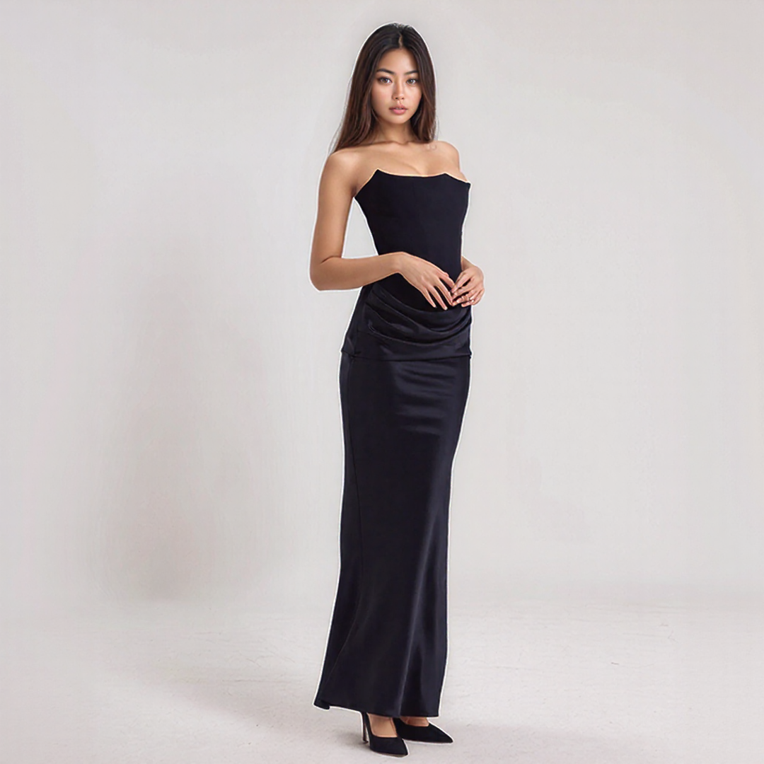 Queena | Συλλογή Τάση – Crop Top Bandeau και Μακριά Φούστα Υψηλής Μέσης