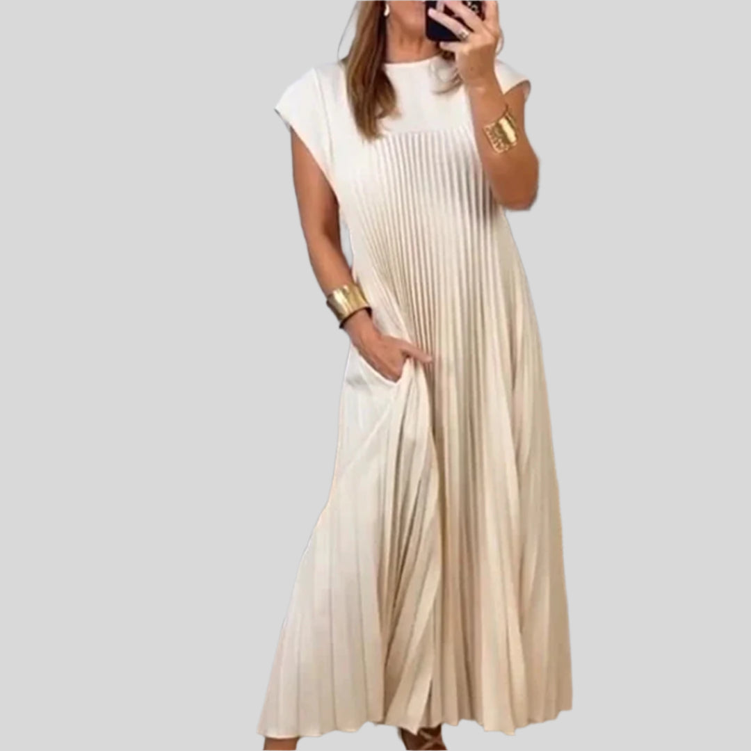 Ιβάνα | Κρεμώδης Πλισέ Φόρεμα – Ελαφρότητα και Υπέροχη Σιλουέτα