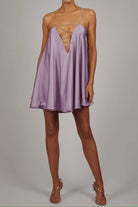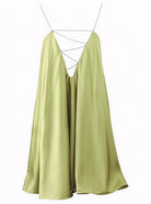 Αυτή η κοντή ρέουσα φορεσιά αναδεικνύει τη σιλουέτα με κομψότητα και ελαφρότητα. Οι λεπτές τιράντες διακοσμημένες με κοσμήματα προσθέτουν μια φωτεινή και εκλεπτυσμένη πινελιά. Ιδανική για βραδιές ή ειδικές περιστάσεις όπου κάθε λεπτομέρεια μετράει.