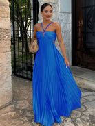 Λουκία | Μακριά Φόρεμα Μπούστο Πλισέ Πίσω Σταυρωτό Χωρίς Μανίκια – Κομψότητα Και Διακριτικότητα