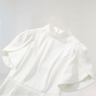 Αυτό το μικρό φόρεμα έχει κολακευτική γραμμή και κοντά φουσκωτά μανίκια. Ο δομημένος ψηλός γιακάς προσθέτει μια μοντέρνα και εκλεπτυσμένη πινελιά.
