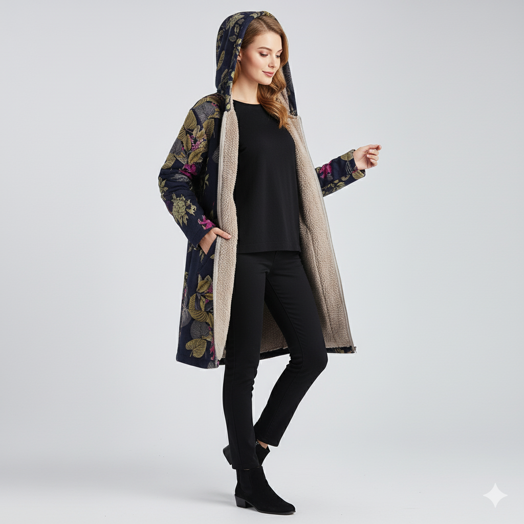 Sanae | Giacca Invernale Con Cappuccio Donna — Calore Morbido & Stile Floreale