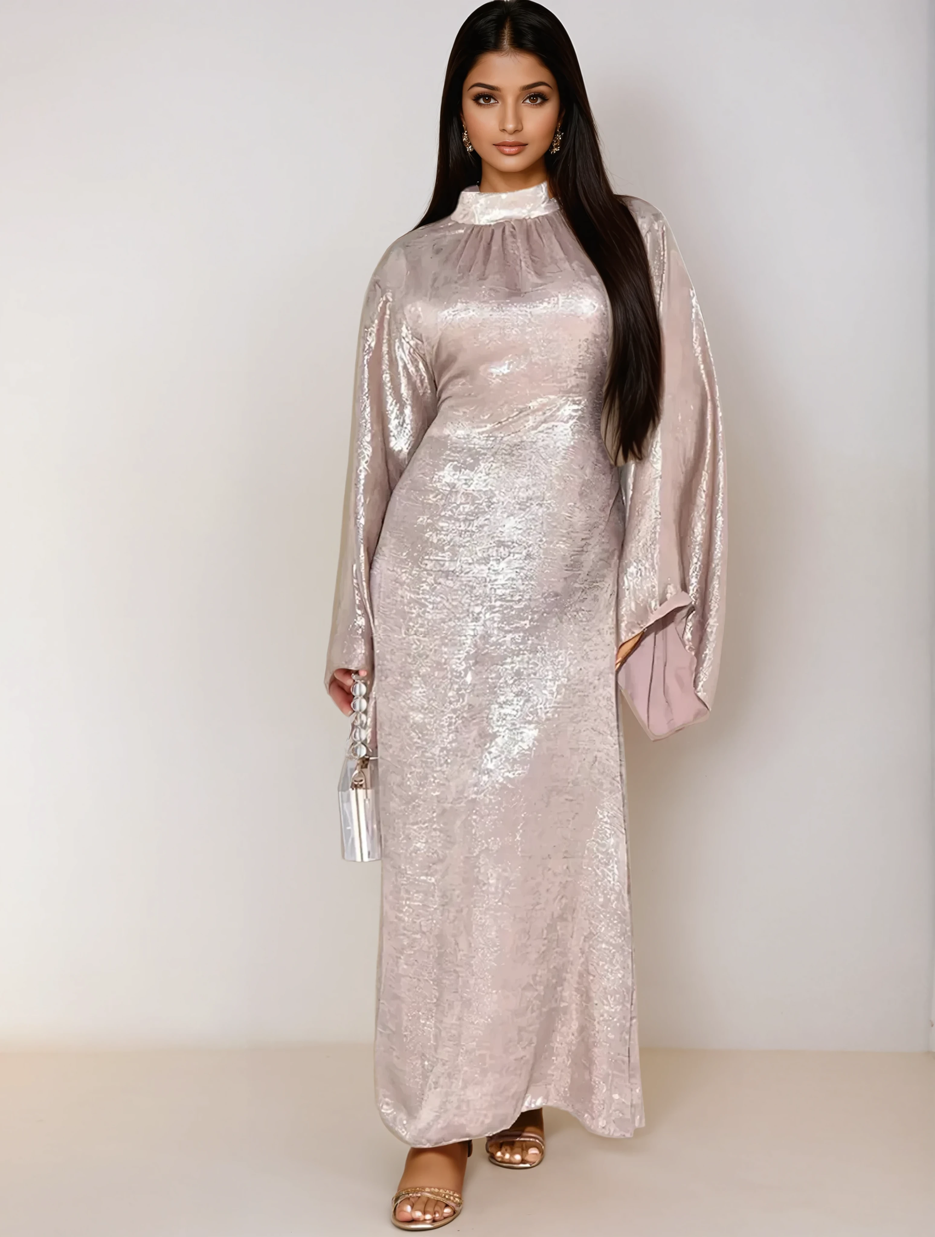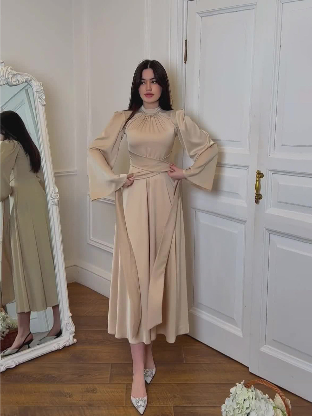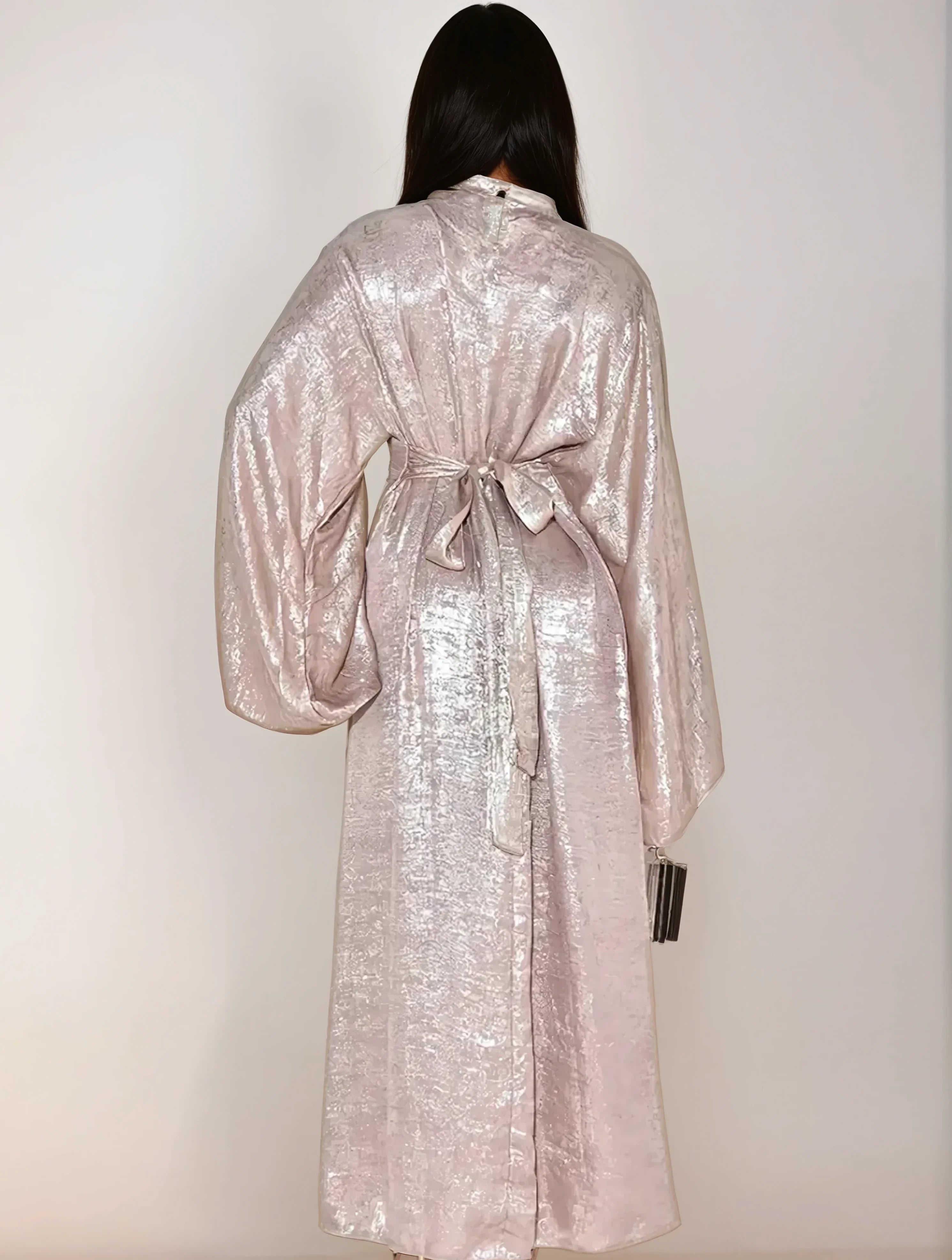 Velia | Robe Abaya Beige – Allure Douce Et Contemporaine
