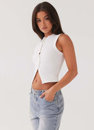 איזבל | טופ ללא שרוולים עם כפתורים – אלגנטיות נינוחה