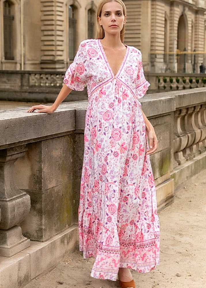 アデリー | ボヘミアン風のロングフローイドドレス
