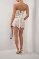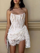 Denne korte kjolen fremhever silhuetten med en dristig innsnitt. Dens ermeløse design og snøring bak gir et unikt preg. Ideell for kvelder eller arrangementer der man ønsker å skille seg ut med tillit.