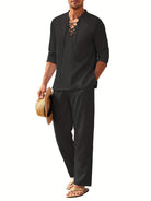 Immergiti nell'eleganza informale con questo insieme bohemien chic composto da una maglietta a maniche lunghe decorata con un laccetto al collo e un pantalone fluido a gamba ampia. Ideale per giornate di sole o per fughe informali, questo set unisce stile e comfort. La sua vestibilità leggera, le tasche pratiche e la vita regolabile lo rendono una scelta tanto estetica quanto funzionale.