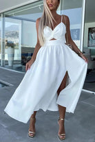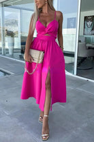 Táto midi šaty zvýrazňujú siluetu svojím priliehavým strihom a rafinovaným výstrihom. Dostupné v niekoľkých farbách, sú vhodné ako na špeciálne príležitosti, tak aj na bežné dni. Jej kvalitná tkanina zaručuje pohodlie a trvanlivosť, pričom zostáva ľahko udržiavateľná.